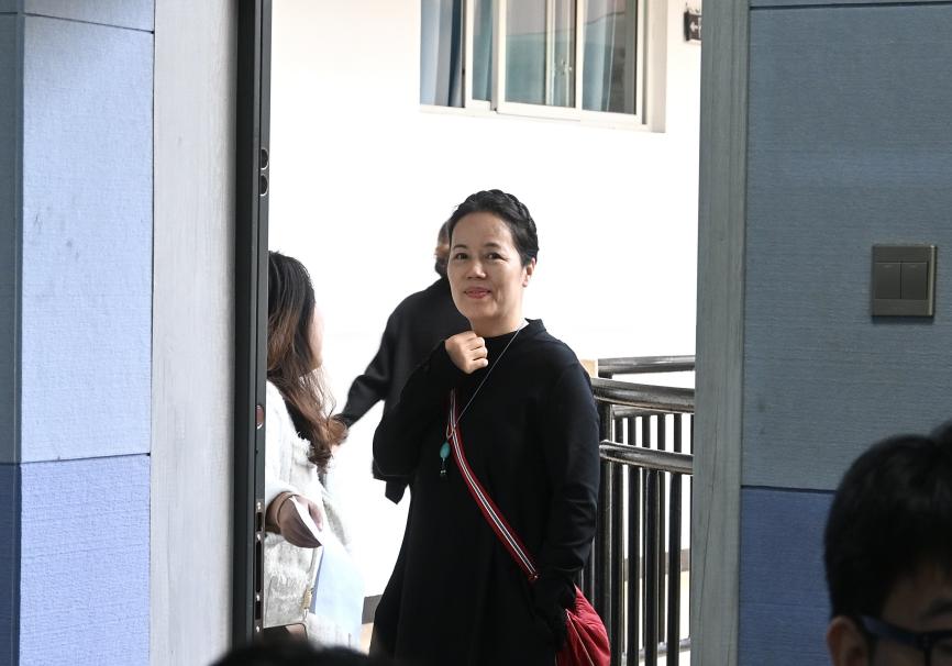 (重庆作协诗创委副主任金铃子驻足观摩班会)
