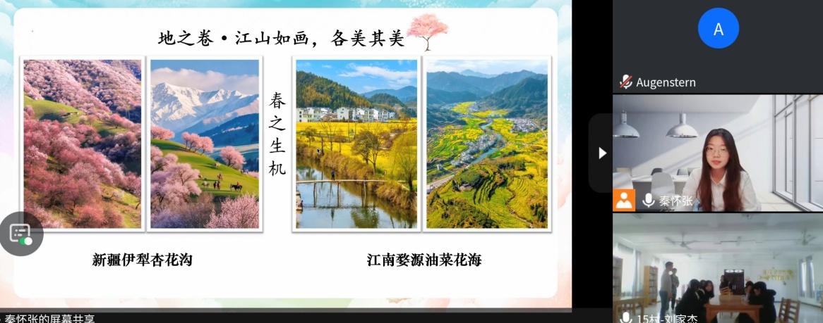 山河为卷,诗画传情见同心。讲座以 “山河同春夏,诗画共此情” 为主题,紧扣 “推广国家通用语言文字” 核心目标,通过地理景观与诗词文脉的结合,展现中华民族多元共生的文化特质。新疆喀纳斯湖与江南西湖、岑参 “梨花” 与杨万里 “小荷” 的跨时空对话,让两地参与者感受地域之异与文脉之通。