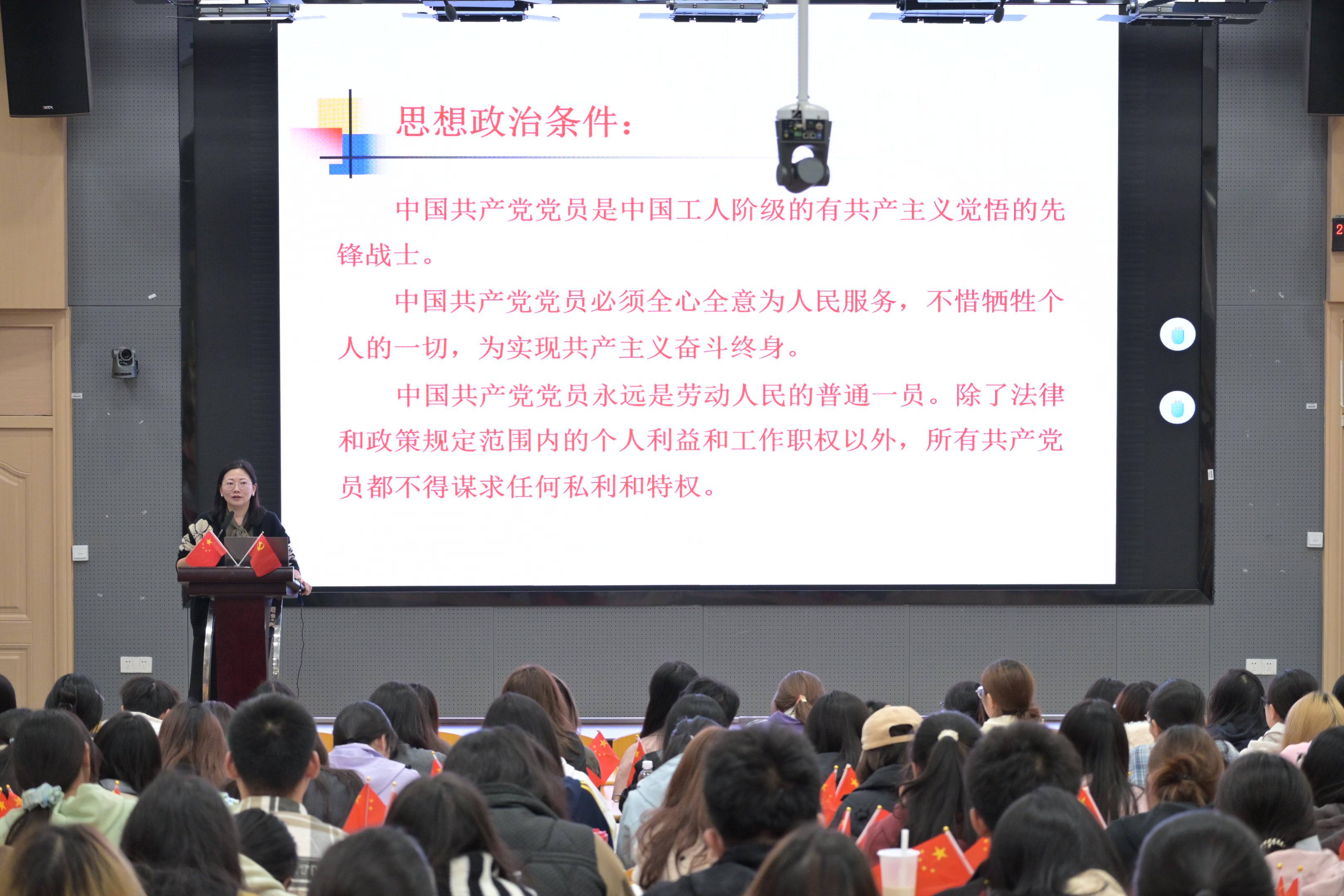 为帮助广大积极分子进一步学习党的各项理论和知识,熟悉入党流程,了解党员的权利与义务,2025年11月4日,文学与新闻传播学院开展了第48期入党积极分子党课培训线下授课第五讲。本次党课培训由文学与新闻传播学院党总支书记陈婷婷主讲,文新学院175位学员和机关党总支11位学员全部参加。