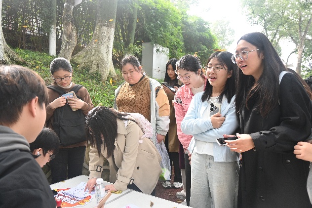 为深刻弘践行陶行知先生“教学做合一”的教育思想,推动志愿服务精神在校园内落地生根,文新志愿者服务队于11月13日12:00在文渊楼精心打造了“行知探秘”精品项目。该项目突破传统活动形式,以“沉浸式集章打卡”为载体,融合文化体验与实践挑战,为全校师生带来了一堂有趣味的“行走思政课”。