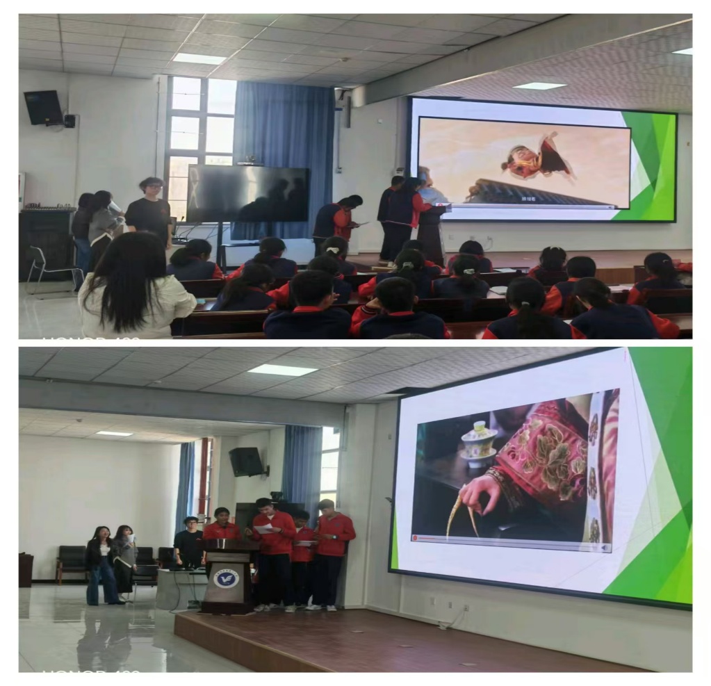 其中,“情景配音秀”环节尤为精彩。该环节由实习指导教师郑渊琰同学预先筹备,她精心挑选了各类型影视经典片段,并完成了去除原声、保留背景音乐与字幕的技术处理,为活动的顺利开展提供了有力支持。随后,各小组现场抽取片段进行即兴配音,将活动气氛推向高潮。在为一则电影片段配音时,扮演主角的凯利比努尔同学不仅精准地跟上了语速,还巧妙地加入了符合角色情绪的惊叹词,惟妙惟肖的表演赢得了全场热烈的掌声。评委老师在点评中充分肯定了同学们在保持发音规范的同时,对角色情感的生动把握。