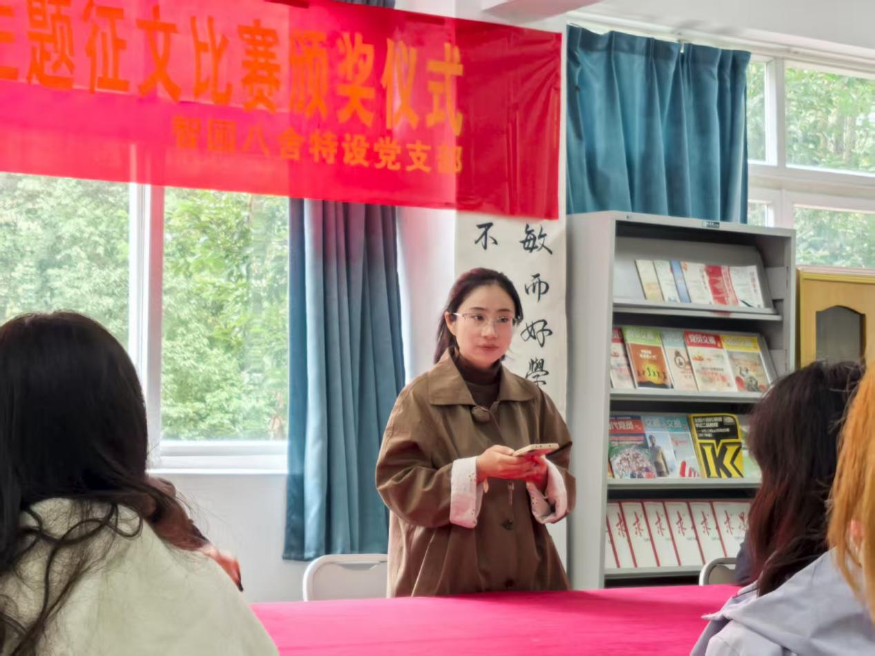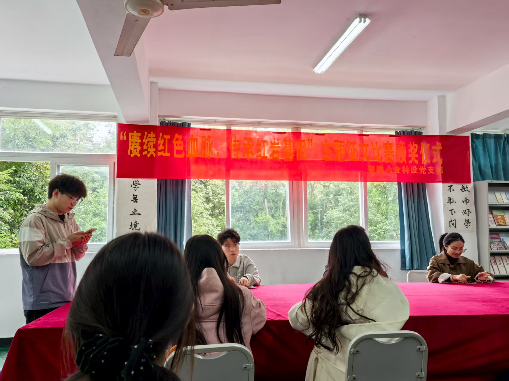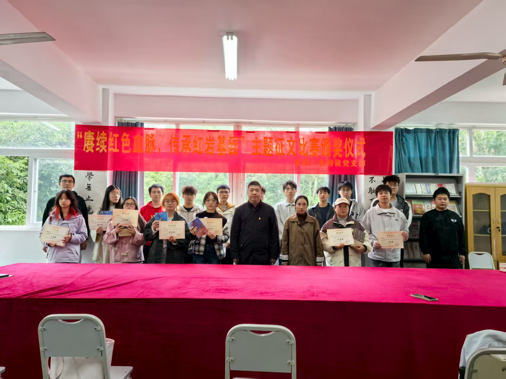 为深入传承红色文化根脉,大力弘扬红岩精神,引导青年学子厚植家国情怀,2025年11月13日,“赓续红色血脉,传承红岩基因”主题征文比赛颁奖典礼在智园八舍二楼党员活动室隆重举行。文学与新闻传播学院党总支副书记刘名学、辅导员向明雪莅临指导,智园八舍楼长游凯、党员服务站站长曾好、党员服务站成员与楼栋大学生自我管理委员会同学共同参与,现场氛围庄重而热烈。