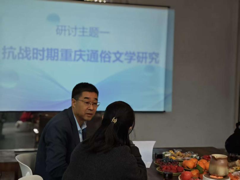 巴蜀文化研究中心成员孙文以基础理论研究为核心,分享其在“抗战时期重庆通俗文学研究”方向的前期研究基础。该研究聚焦抗战时期重庆地区通俗文学这一地方文化领域,系统挖掘其在战时文化语境下的历史价值与现实意义,直观呈现中心在地方人文社科基础理论研究领域的探索成果。