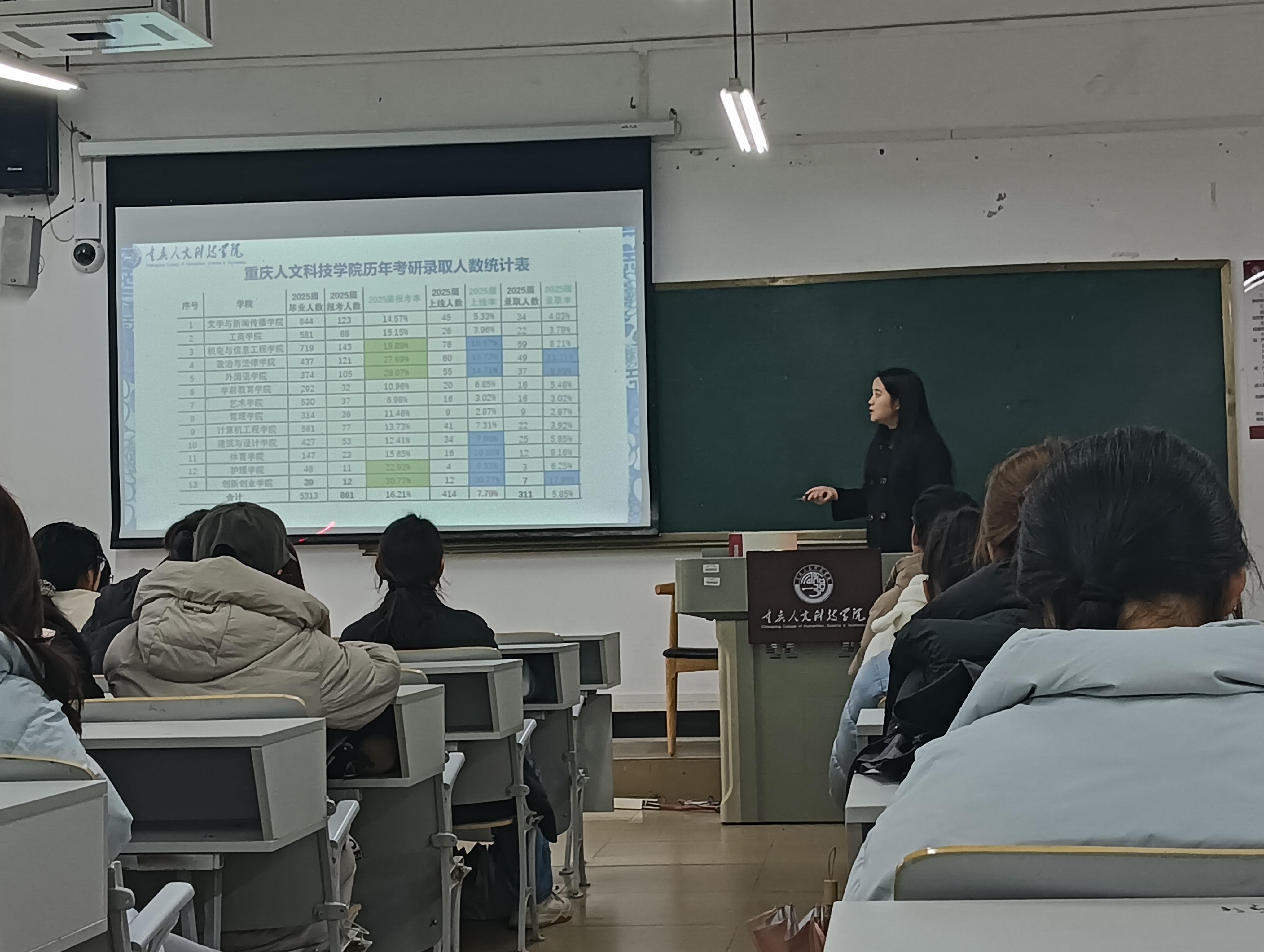 为了让大家更好的了解考研局势,有效地收集并分析考研信息,12月3日13:00——14:00,在指导老师何娉婷的组织下,文新考研交流团邀请到了王婷婷老师在第九教学楼9406教室开展了主题为“做好数据分析,助力考研赢在起跑线”的考研宣讲讲座。