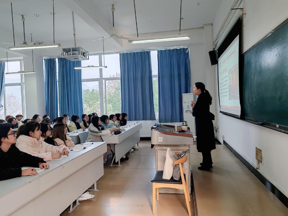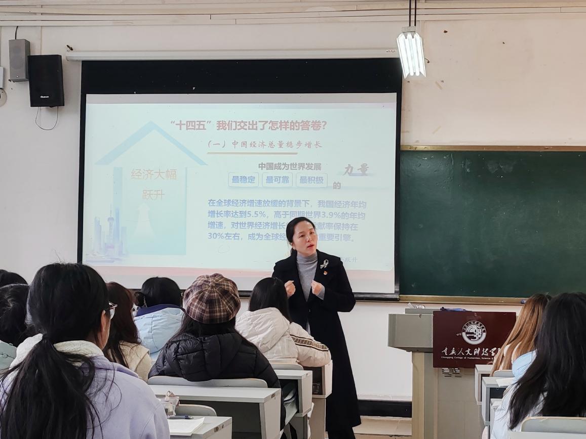 12月11日,校长助理吴静走进文学与新闻传播学院,为2025级汉语言文学3班学子带来了一场题为《“决胜‘十四五’,奋发‘十五五’——深入学习党的二十届四中全会精神”》的形势政策课,以生动数据与鲜活案例解码“十四五”时期我国经济社会发展的重大成就,展望“十五五”新征程。