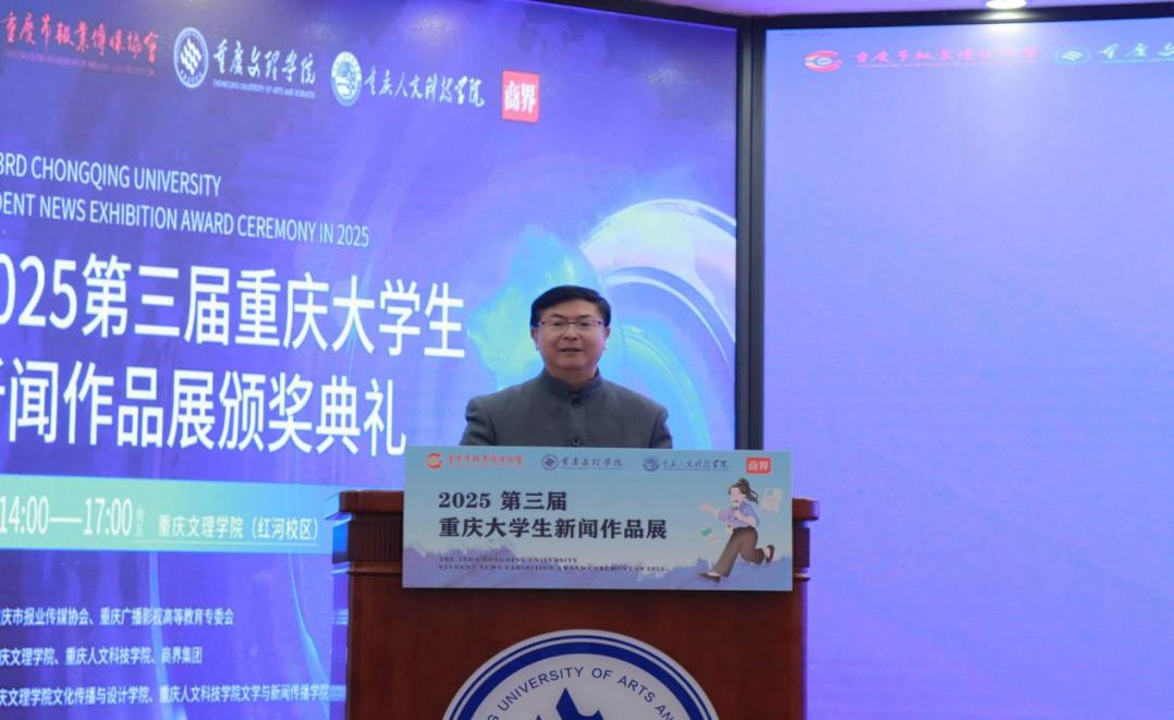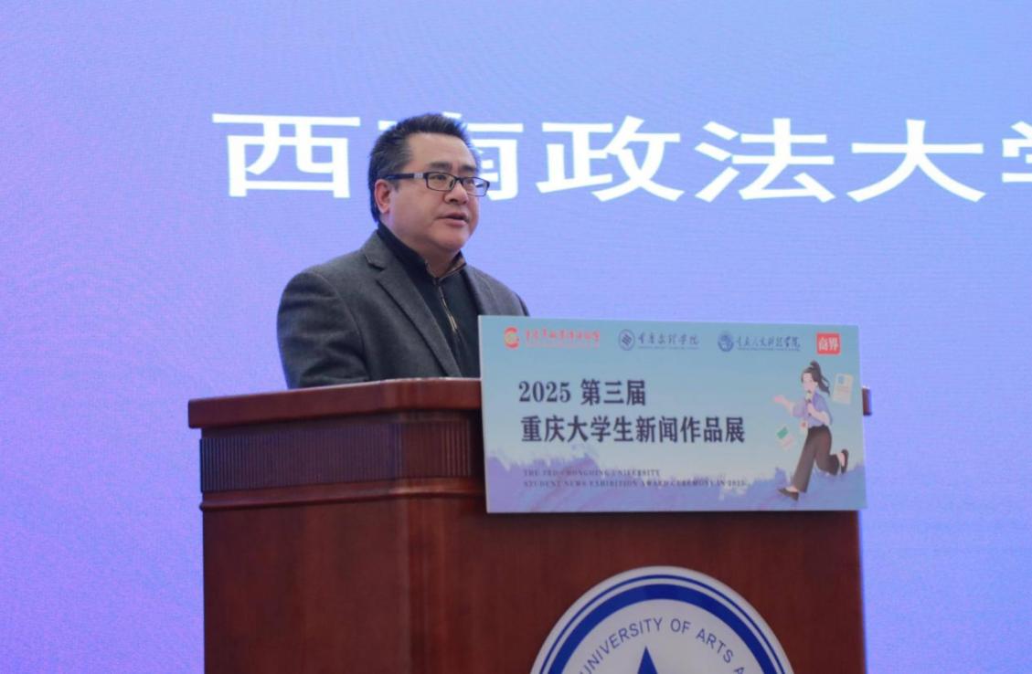 重庆文理学院党委常委、副校长李天福向与会嘉宾致以诚挚欢迎。他表示,希望传媒学子以笔为犁耕耘真相、以赛为壤锤炼本领、以文为种传递温度。寄望高校与媒体深度携手,把新闻作品展打造成传媒学子成长成才的 “练兵场” 与 “加油站”。