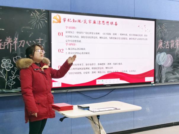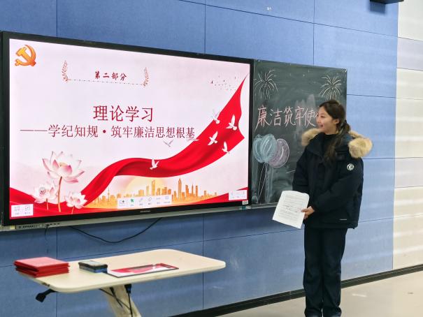 最后,党支部书记王奕乐作总结讲话。她强调,此次廉政主题党日活动是加强支部党风廉政建设的重要举措,也是提升学生党员思想觉悟的有效途径。希望全体学生党员以此次活动为契机,一是要强化理论学习,深入领会《中国共产党纪律处分条例》的精神实质,不断提高政治判断力、政治领悟力、政治执行力;二是要筑牢思想防线,从典型案例中汲取教训,时刻绷紧廉洁自律这根弦,做到心有所畏、言有所戒、行有所止;三是要践行初心使命,将廉洁自律的要求融入学习、工作和生活的方方面面,发挥党员先锋模范作用,带动身边同学共同营造风清气正的校园环境。