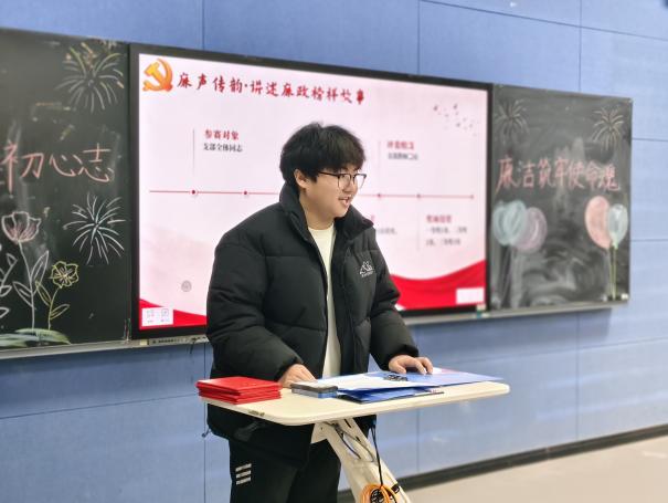 活动现场还举行了 “廉政故事我来讲” 主题活动颁奖仪式。此前,党支部面向全体学生党员征集廉政故事,共评选出 6名获奖选手。随后,3名获奖代表依次上台分享廉政故事,既有古今中外廉洁楷模的感人事迹,也有身边党员坚守初心、廉洁自律的真实案例。真挚的讲述、深刻的感悟,让现场观众深受触动,进一步营造了崇廉尚洁的浓厚氛围。